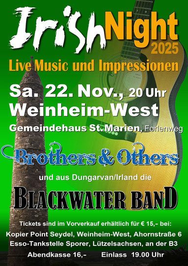 unsere 20. "Irish Night", die wir wieder gemeinsam mit unseren irischen Freunden, der "Blackwater Band" gestalten werden, wirft ihre Schatten voraus.